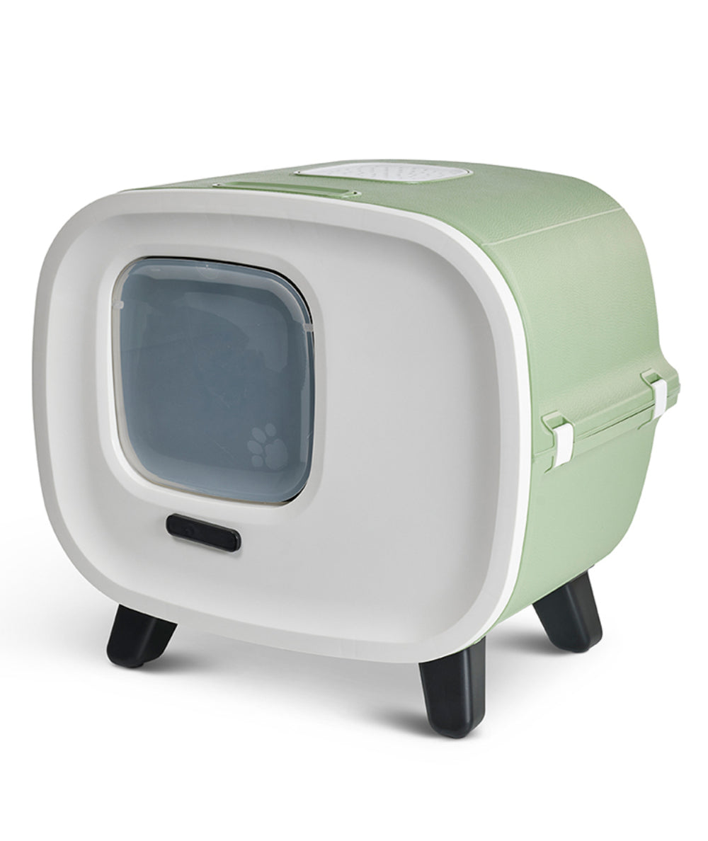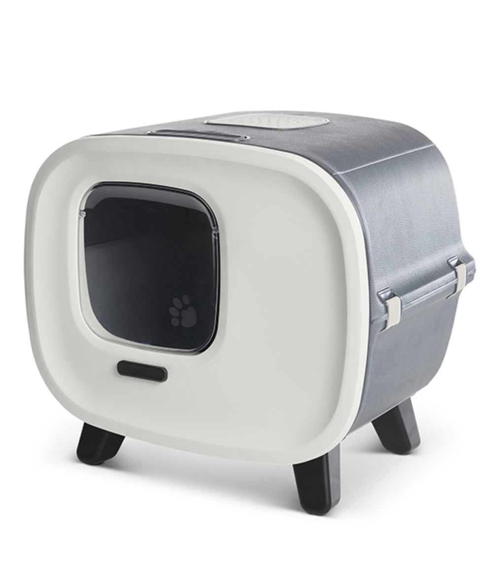 Este hermoso baño merece un lugar destacado en su hogar porque su diseño agrega estilo a cualquier interior. La caja de arena para gatos está hecha de plástico de alta calidad y el acabado con apariencia de cuero le da un aspecto lujoso.
