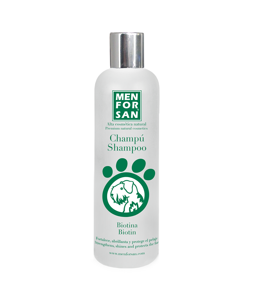 Champú de máxima calidad para perros sin colorantes ni perfume y con propiedades regenerativas del pelaje. La BIOTINA o Vitamina B7 perteneciente al complejo de vitaminas del grupo B ayuda a fortalecer el pelaje fino y quebradizo y mejora la calidad de las estructuras de queratina regenerando y fortaleciendo las raíces capilares. Evita los problemas de piel seca abrillantándola y previniendo la dermatitis seborreica causante de la caída del pelaje. La utilización frecuente de este champú garantiza unos resultados espectaculares. Este champú se puede emplear frecuentemente y esta recomendado para todo tipo de razas de perros.