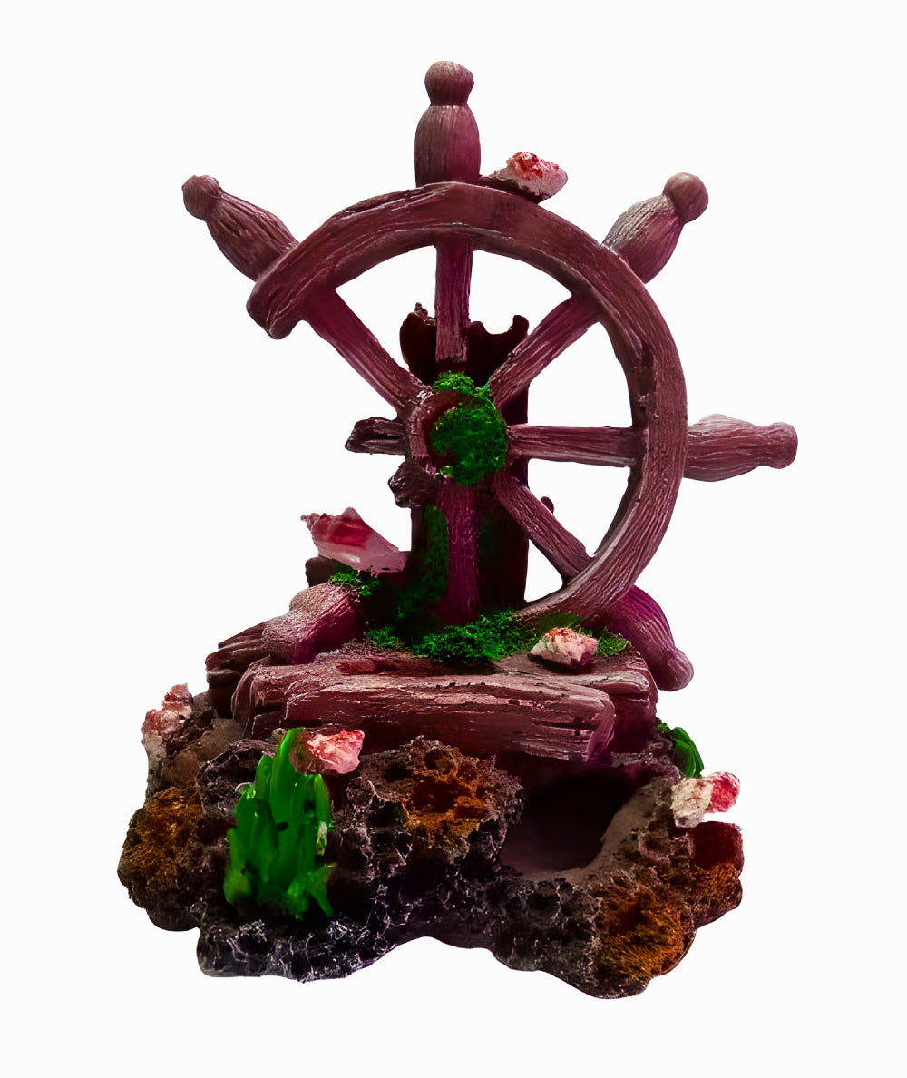 Accesorio decorativo diseñado para imitar el timón de un barco hundido y agregar un toque temático marítimo a tu acuario.