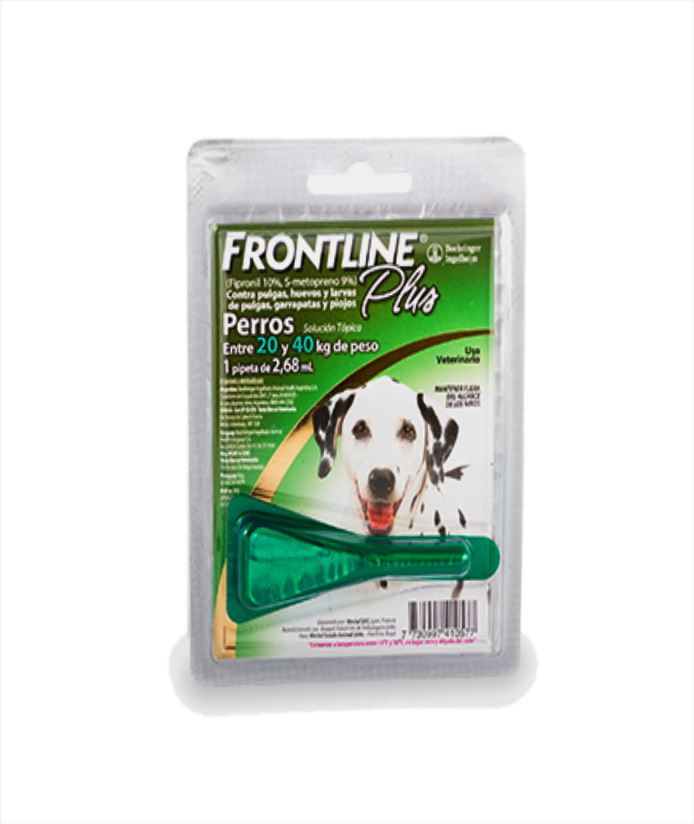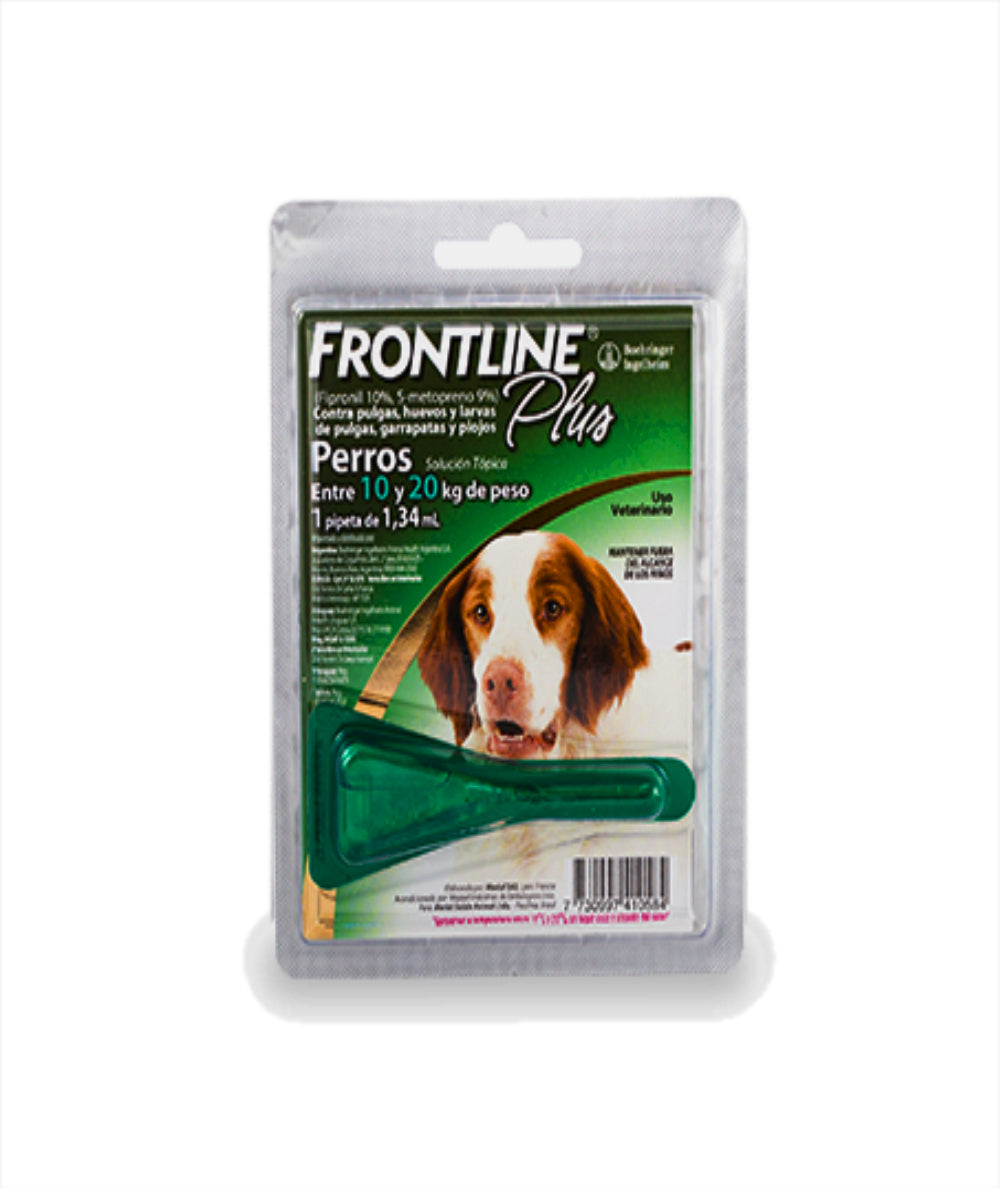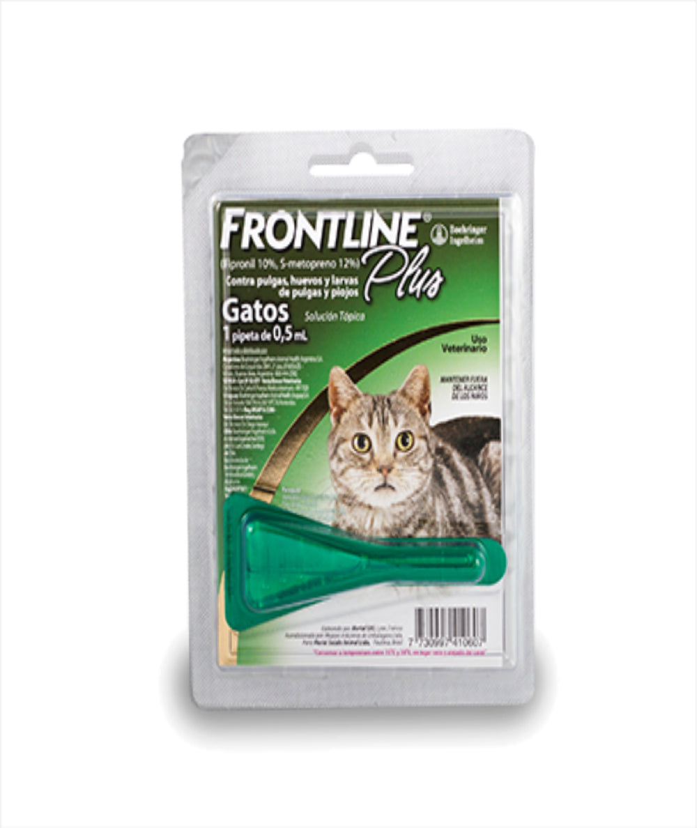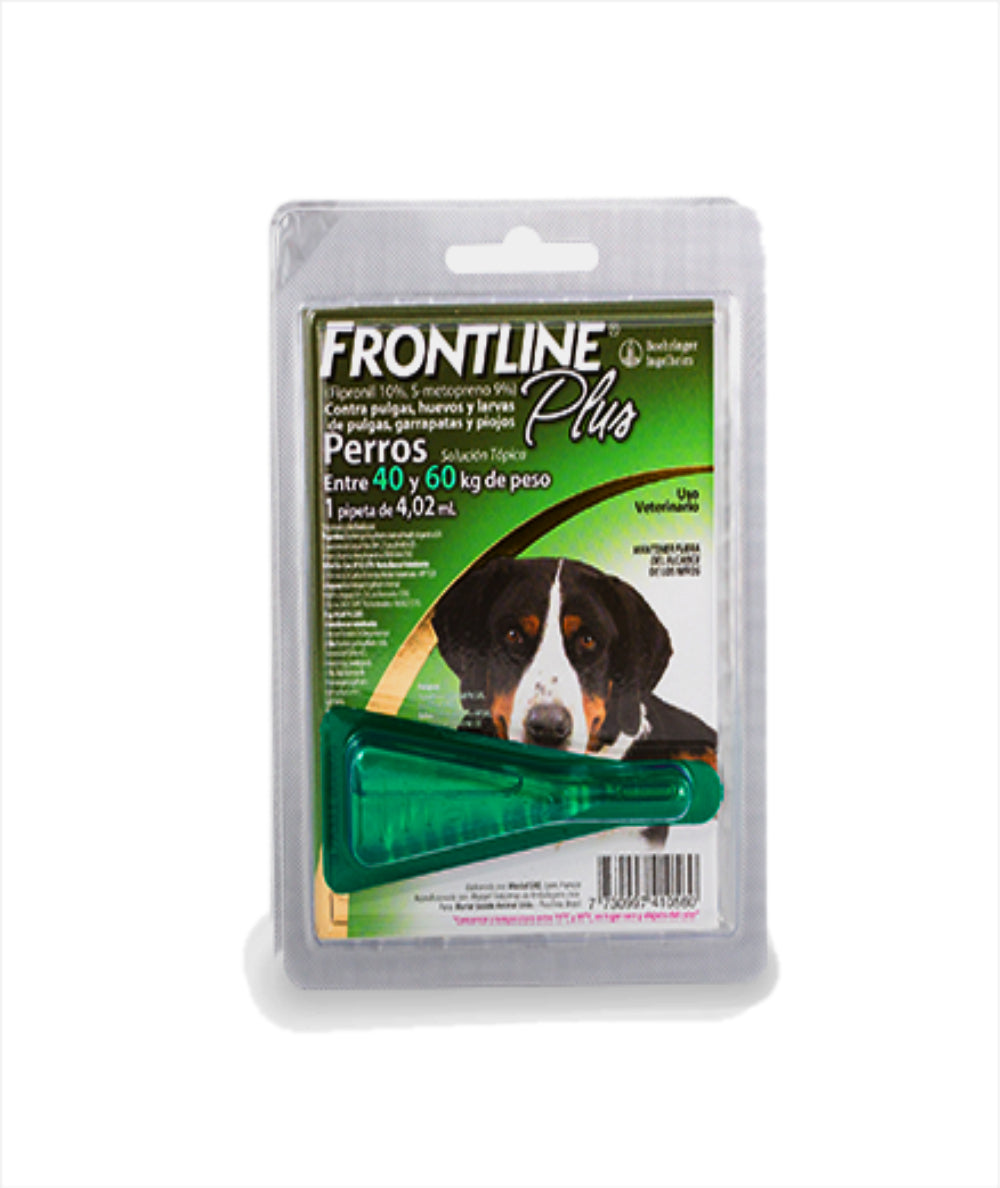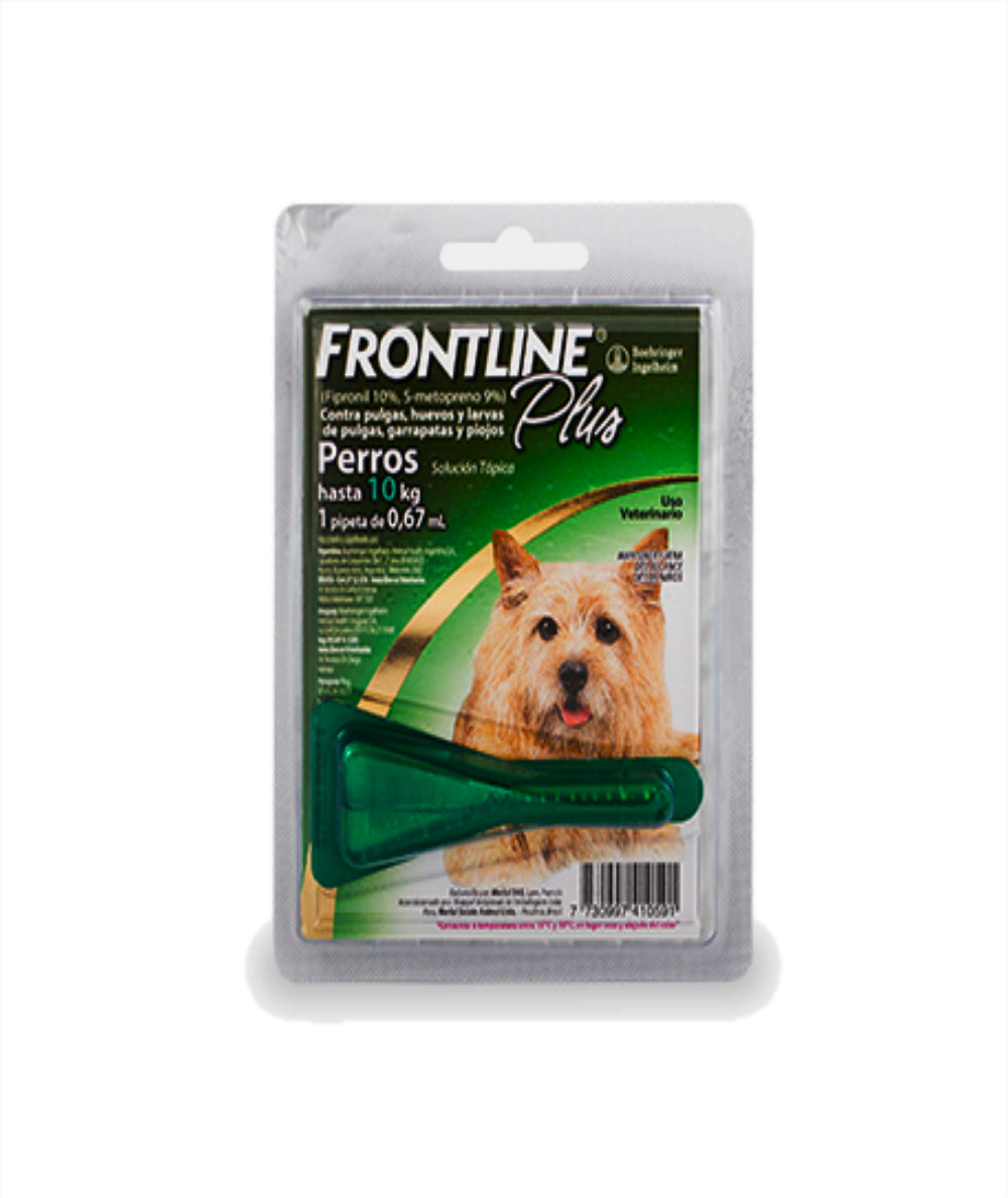 Gracias a su exclusiva formulación con el agregado de S-Metopreno, brinda protección continua, con doble acción sobre pulgas y sobre estadios inmaduros de pulgas (huevos y larvas) presentes en el medio ambiente. FRONTLINE® Plus también elimina garrapatas.