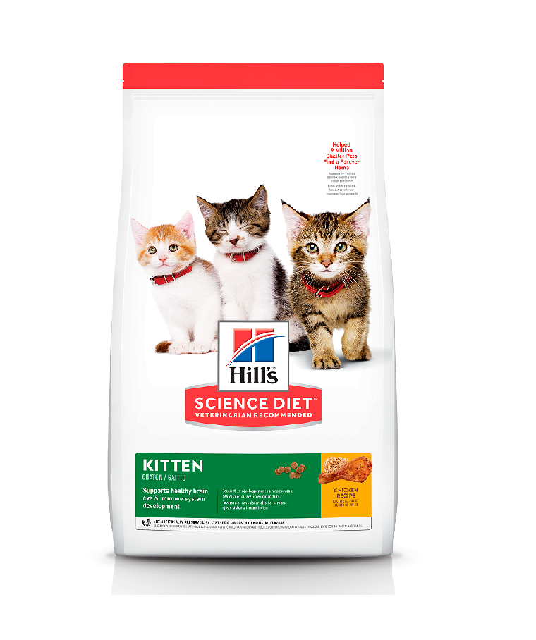 Hill's™ Science Plan™ ALIMENTO PARA GATITOS POLLO (pollo 29%; total ave 45%) es un alimento completo para gatitos de 3 semanas a 12 meses de edad y para gatas en gestación y lactación.