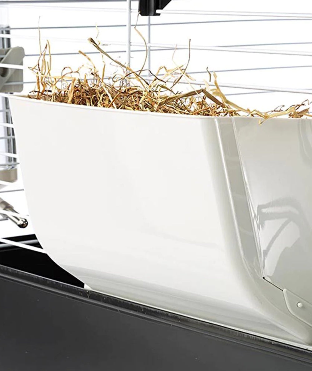 Casita es una gama de cómodas, amplias y atractivas jaulas para cuices y conejos, con un techo redondeado que se puede abrir, con accesorios que incluyen un comedero, un bebedero, un comedero y una madriguera con una pared escalonada para que tu pequeño amigo pueda subirse fácilmente a ella.