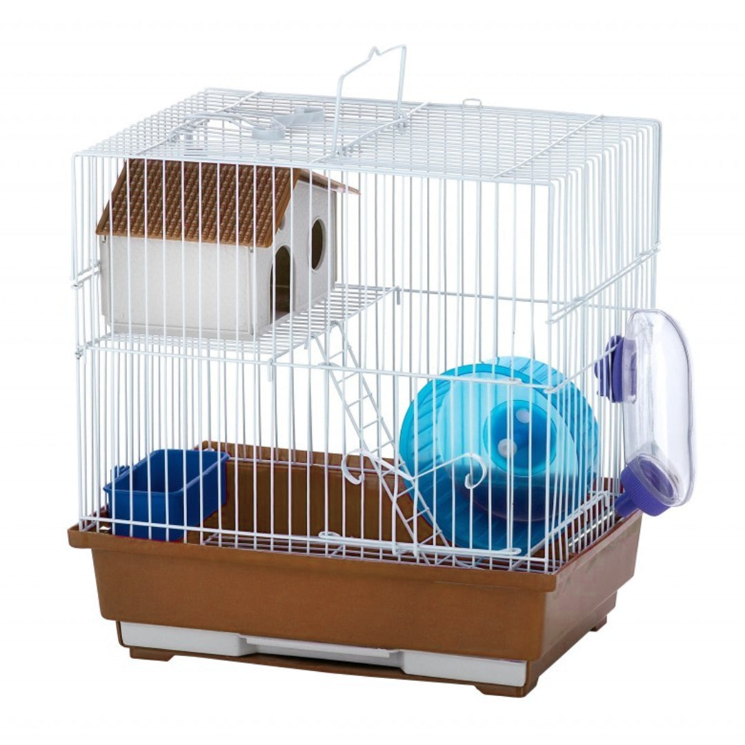 Jaula chica para hámster, ratones o jerbos. Especial para estadía provisoria o transporte. No es recomendable mantener roedores de forma continua en jaulas de este tamaño. Incluye rueda, comedero, bebedero y casa.