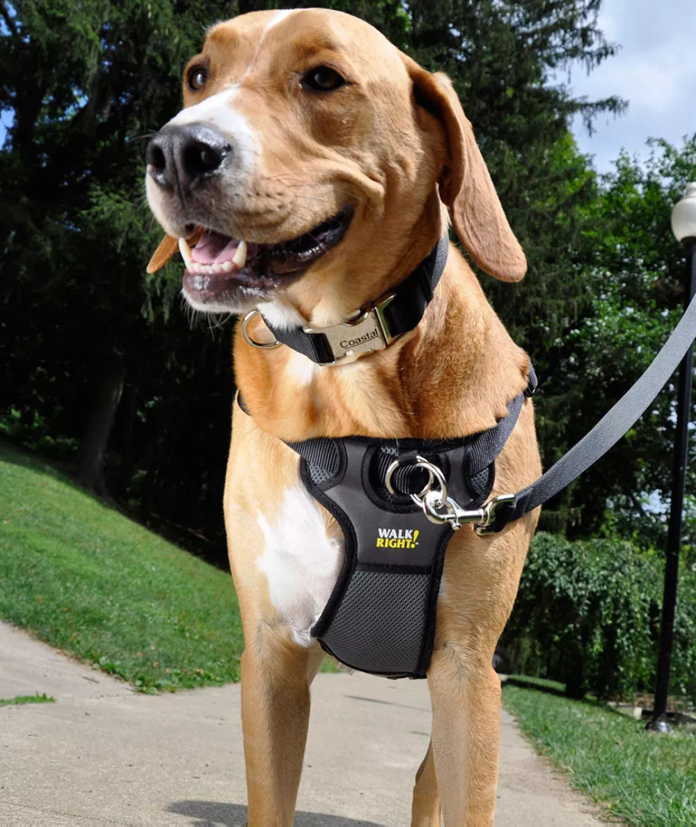 ¡Pon fin a los tirones durante tus caminatas con el arnés para perros acolchado con conexión frontal Walk Right! Este innovador arnés ofrece dos opciones de conexión de correa para ayudar a entrenar a su perro a caminar correctamente.