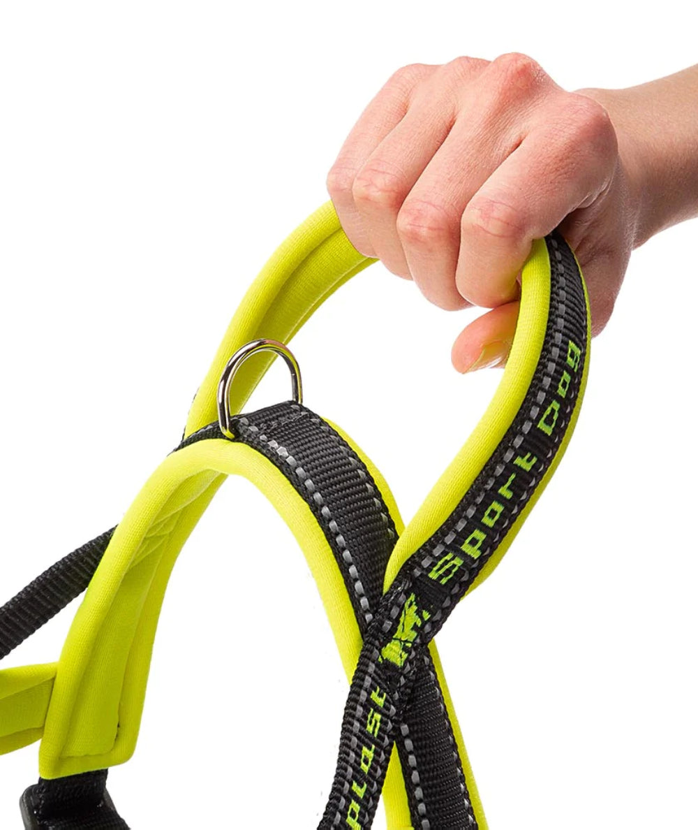 Sport Dog son arneses de tipo noruego para perros, realizados en robusto nailon, resistentes a los tirones del perro y duraderos a lo largo del tiempo. Gracias al suave acolchado interno, presente en toda la estructura, también son muy confortables. Los arneses se caracterizan por un diseño deportivo y se realizan en tonalidades fluorescentes de última moda. Están dotados con costuras reflectantes de alta visibilidad, para que puedas pasear a tu perro al atardecer o por la noche en total seguridad.