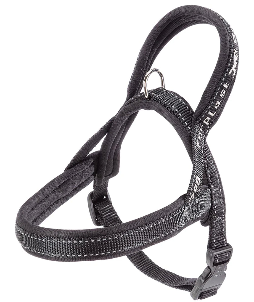 Los arneses de tipo noruego como Sport Dog se han diseñado especialmente para ser muy fáciles de poner y se ajustan en un segundo gracias a las hebillas correderas de plástico y al cierre con clip con resorte.