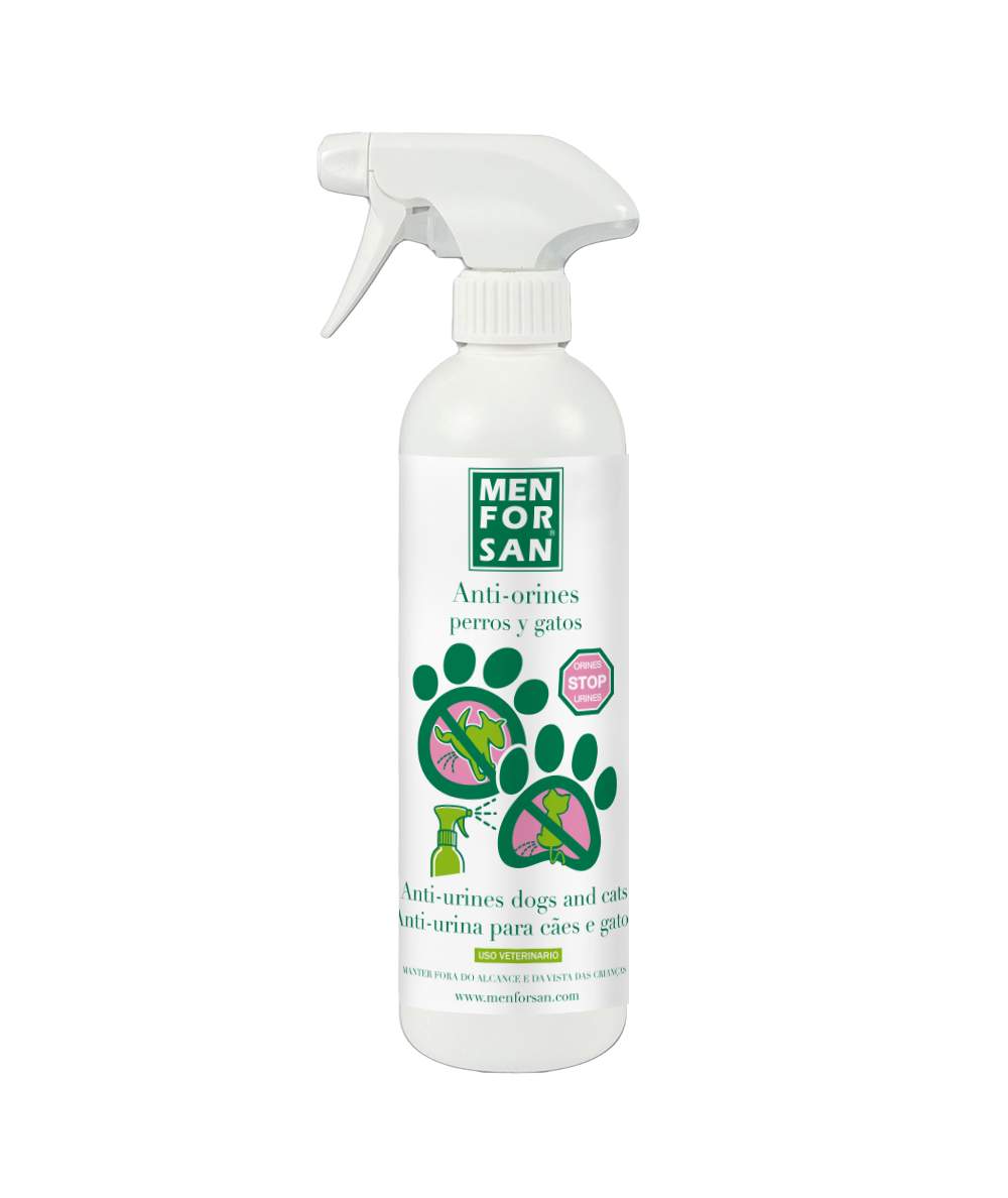 Producto educador repelente anti-orines de perros. Evita los orines no deseados en escaparates, fachadas, esquinas, ruedas de coches etc. Su aplicación diaria disminuye y reduce los hábitos de orinar adquiridos en estos lugares por perros.